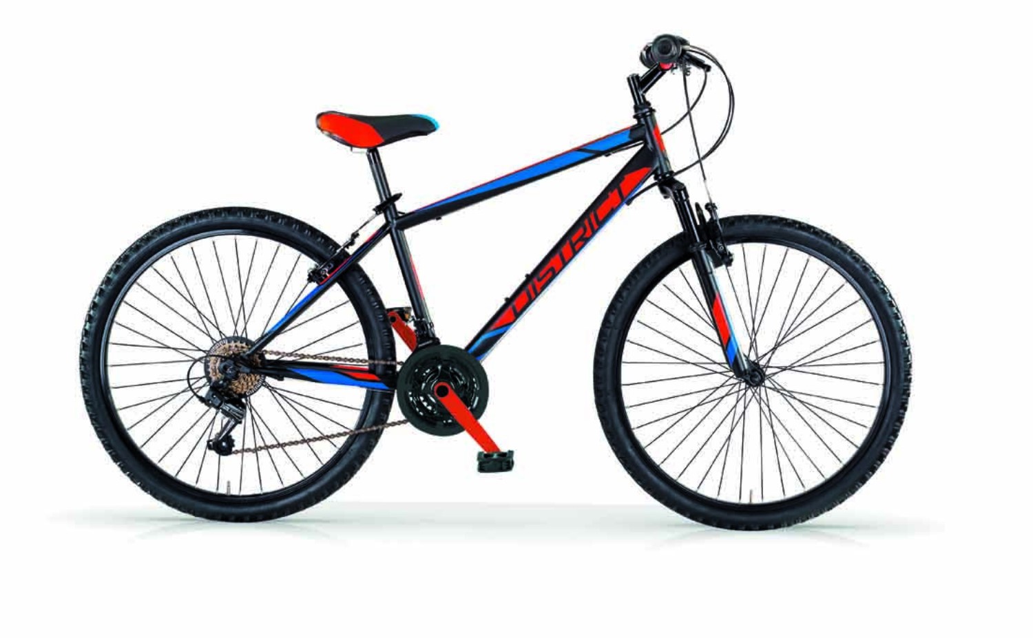 La bicicletta District di mbm è equipaggiata con un cambio shimano 18 velocità, il telaio è in acciaio saldobrasato e monta freni v brake, uno dei migliori sistemi frenanti per le biciclette.
